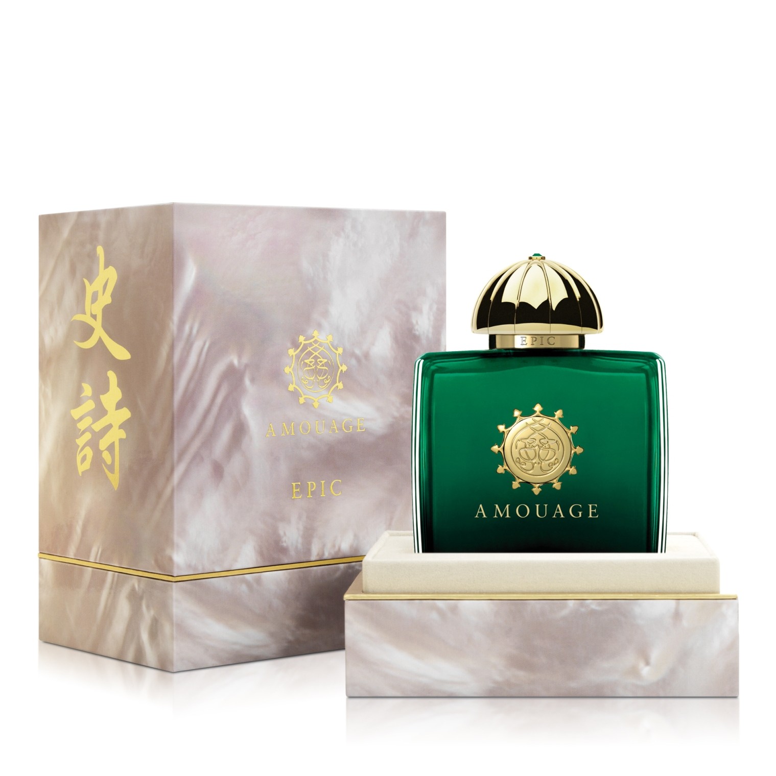 В 2009 году был создан незабываемый дуэт ароматов Amouage Epic Амуа Эпик, появившихся на свет в роскошных зеленоватых флаконах. Возвышенная и величественная композиция женской парфюмированной воды Amouage Epic основана на нотах розы, герани, жасмина, розового перца, пачули, фиалкового корня, ванили, тмина, корицы, амбры, ускуса и сандала.